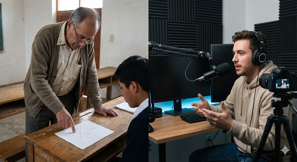 O segredo não é o formato, mas sim a metodologia. Um curso gravado bem feito é infinitamente melhor que uma aula ao vivo mal planejada. O que define a qualidade é a didática do professor e a estruturação do conteúdo.